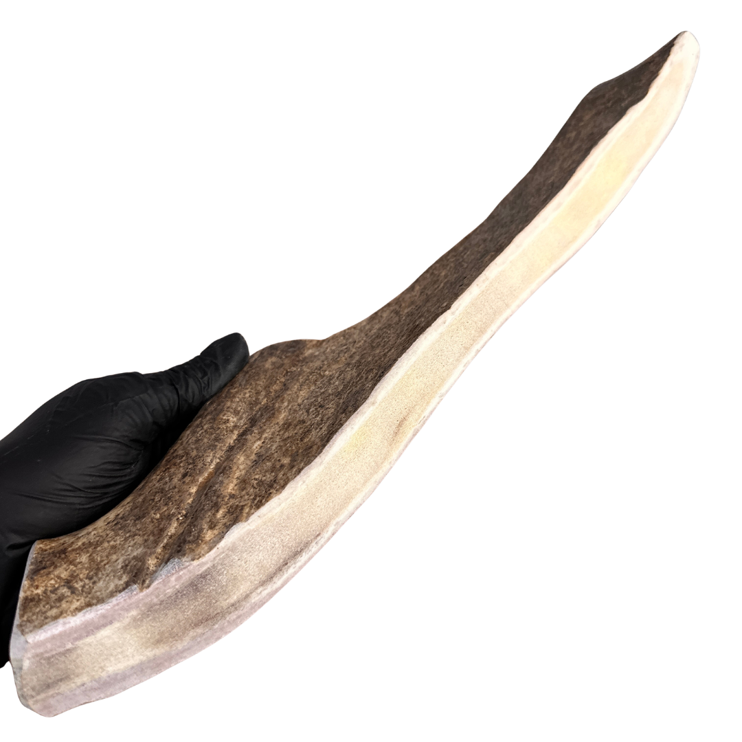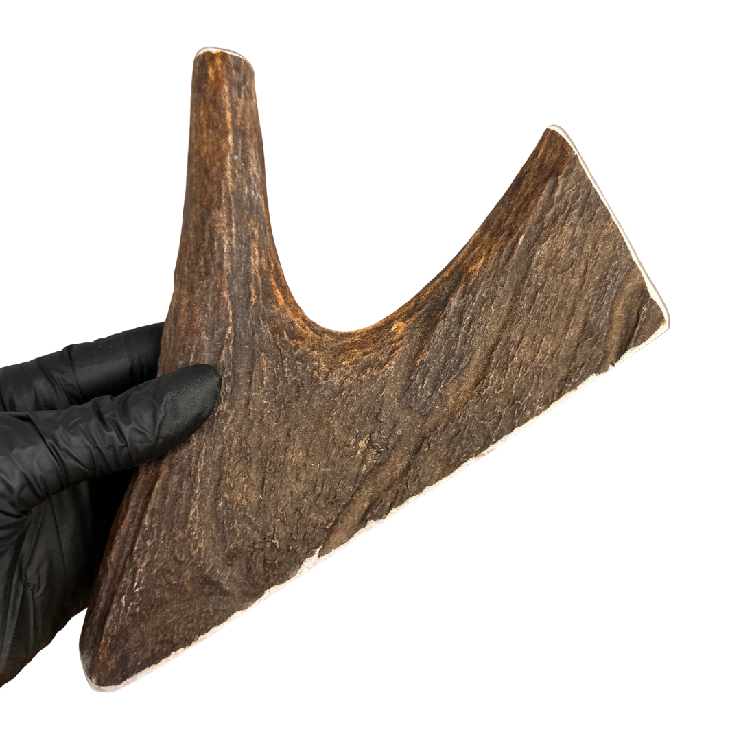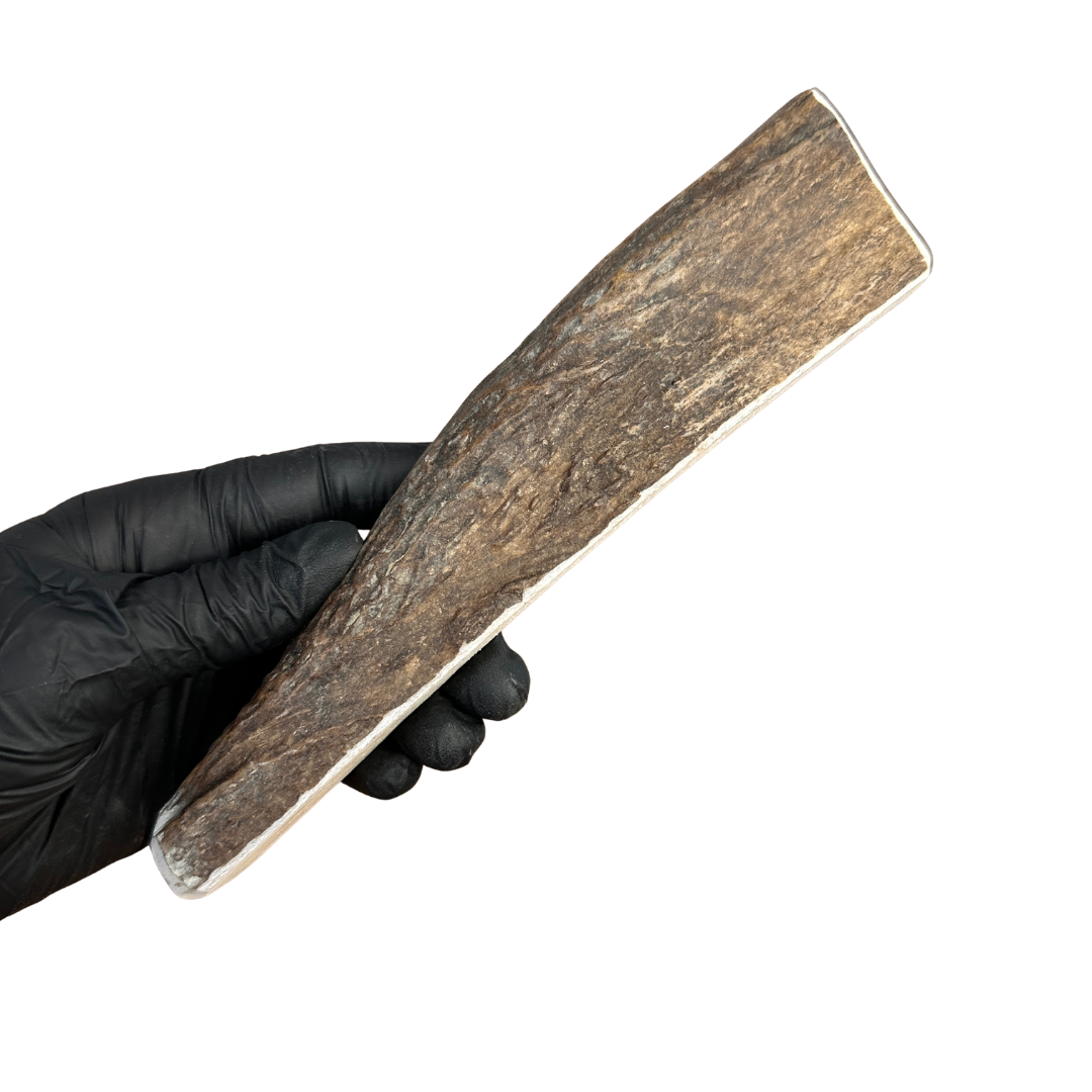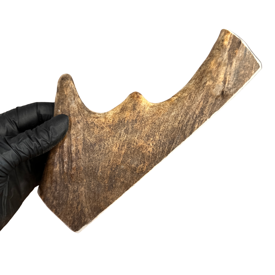Our Moose Antler Dog Chews are naturally shed, ethically sourced, and hand-processed in Wyoming. Moose antlers come in a variety of shapes and densities — paddles are softer and ideal for light or picky chewers, while burrs and tines are much tougher and perfect for power chewers.